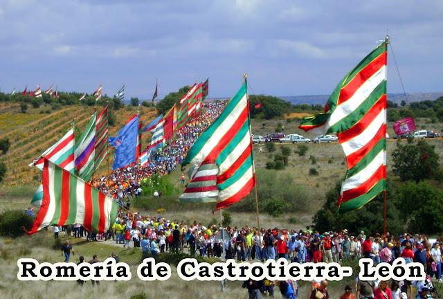 Única, no solo en España sino en el mundo. Arranca del santuario de la Virgen del Castro, en Castrotierra de la Valduerna, pero nadie puede atribuirse título de propiedad. Es la gran romería de la Valduerna, del Órbigo, del Tuerto, del Jamuz, de la Maragatería, del Páramo… Todos juntos, cada pueblo con sus insignias, el pendón del concejo y la cruz parroquial, conformando una interminable marcha de peregrinos que, por la Calzada de Nuestra Señora, caminan veinte kilómetros hasta Astorga, acompañando a la Virgen del Castro, entre músicas de dulzainas, de chifla y tamboril y de gaitas, para pedir la lluvia.